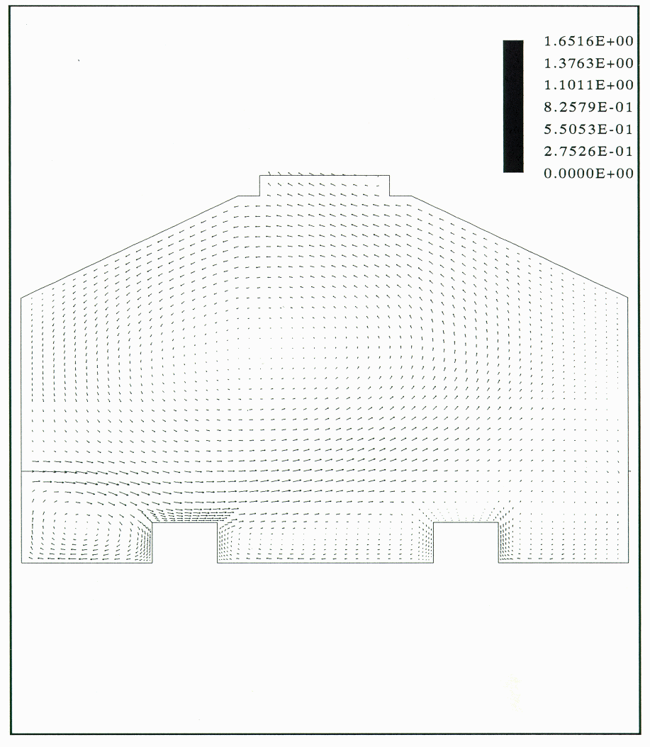 The results of the present test cases indicated that the Reynolds flux turbulence model gave a better simulation of the thermal plumes due to natural convection than the K-E turbulence model. Both the flow pattern and the temperature profile of the plume were better simulated by the Reynolds flux model However, the Reynolds flux model makes incorrect predictions of the air temperature near the floor The zone near the floor is the work area of cell operators and it is in this zone where the estimation of the working conditions would be inaccurate. Similar incorrect predictions were encountered when a coarse mesh was used around the cell model. In that case the air temperature directly above the cell was less than the air inlet temperature.