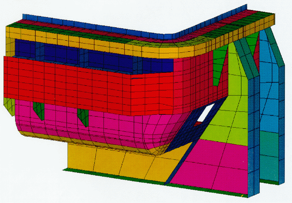 The complex geometry and generation of heat within the cathode lining makes a combined calculation of the heat and current flow by finite element methods desirable. A thermo-electric model allows for the calculation of the location of isotherms in the lining, the freeze profile and the heat dissipated by the cathode. After validation of the model results against measurements obtained from thermo-electric "blitz" campaigns, the model can be used to investigate changes in the lining materials as well as changes in the process parameters. Quarter Model Description The cell technology used at the Grande-Baie smelter, with its sloped potshell side wall, its curved potshell end wall and its intricate pier design, has one of the more complex cathode lining geometries in the aluminum industry (Figure 1). The representation of such a complex geometry by a parametric finite element model proved to be quite an undertaking, especially in the corner zone between the side and end wall designs.