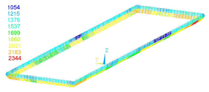 Figure 14: Corresponding ledge profile computed in step 3. Conclusions A 3D full cell and external bus-bar thermo-electric model was developed and successfully solved. The initial 5 loops ledge profile convergence calculations took 41 CPU hours on a P4 3.2 GHz computer. |