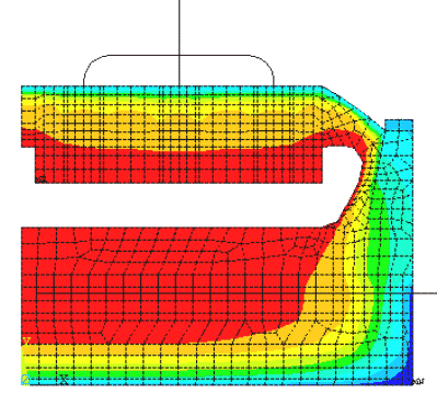 This loop was programmed in a .COM file in the VAX VMS environment. In that loop, ANSYS was called as a subroutine. The calculation of the new nodes position was computed in an external FORTRAN program also called as a subroutine in the .COM file. The mesh had obviously to be very crude as the extra geometry convergence loop added around an order of magnitude to the CPU time required by ANSYS to solve a fix geometry thermo-electric problem. In this first side ledge thickness convergence loop implementation, the solution from the previous loop was not use as initial guess to solve the next loop.