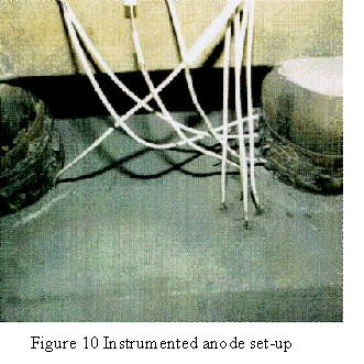 It is obviously better to take brick samples during pot autopsy to have the degradation of the brick property confirmed by lab tests. Instrumented anode For the same reasons, it is very convenient to put thermocouples in an anode and compare thermal gradients measured by thermocouples with those predicted by the model. What is even more important is to take advantage of the steel thermocouple sheath to also use it as a voltage probe (see Figure 10).