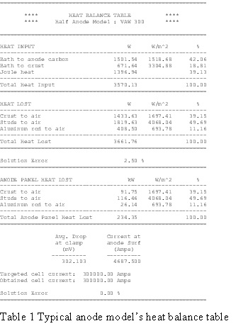 Table 4 presents a typical measurement sheet of a thermal blitz similar to those carried out at Lauralco´s smelter in order to provide the data to validate the models. Table 5 shows typical results obtained out of a thermal blitz exercise: the experimental heat balance table in the same format as the one produced by the model for easy comparisons.