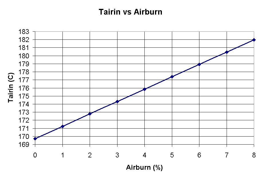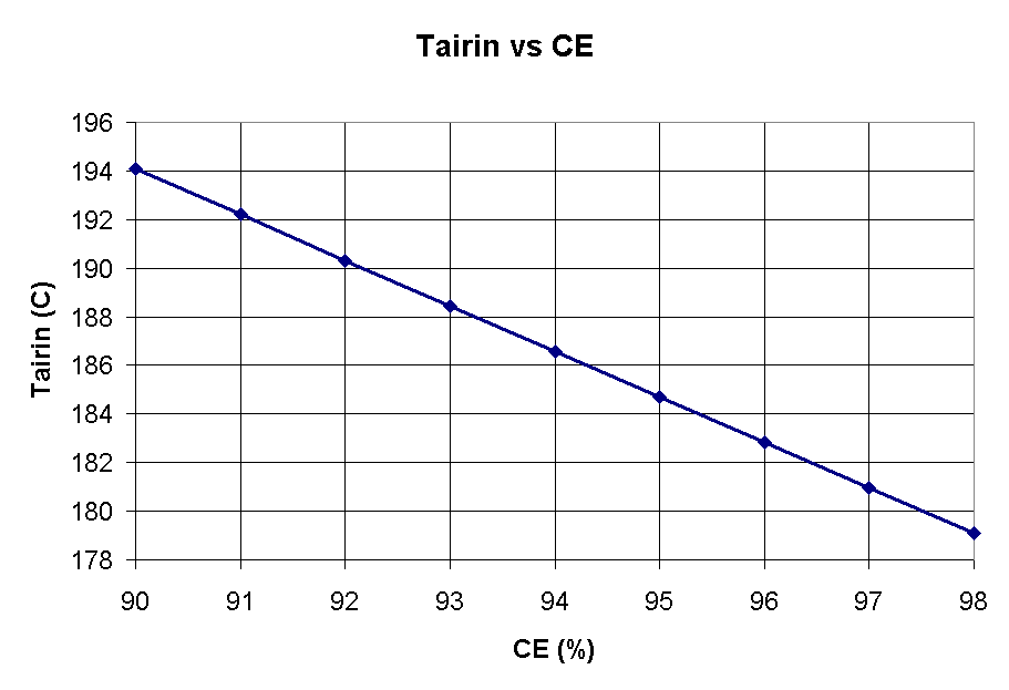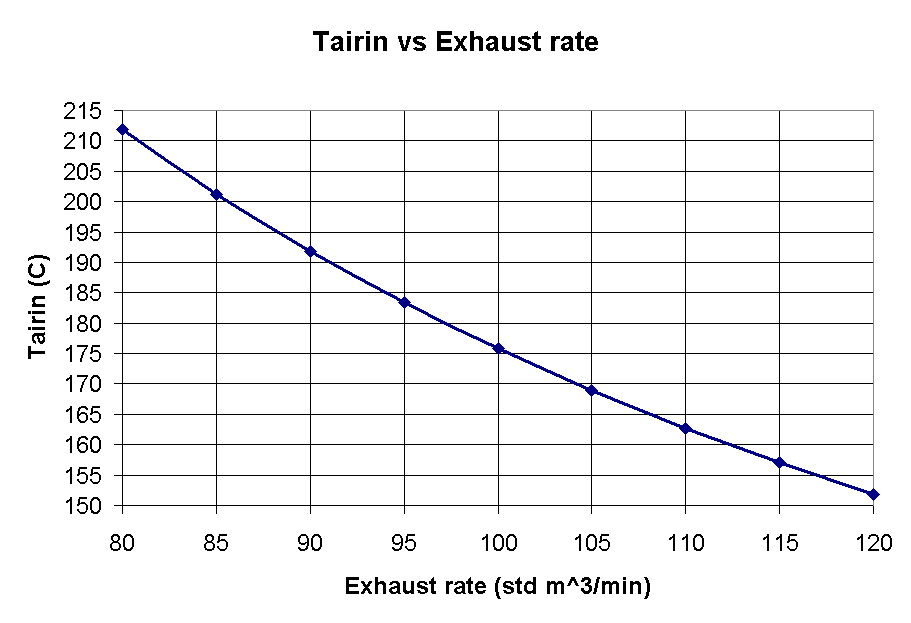 Because the calculation of many of the values depend upon Tblend, Tmix and Tairin, not yet calculated, the solution has to be an iterative process. The suggested value for first iteration is Tblend = 50° C, Tmix = 160° C and Tairin = 170° C.