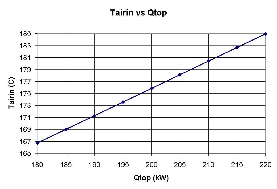 Figure 3 - Tairin vs Sum of heat loss from ore covered and anode stubs