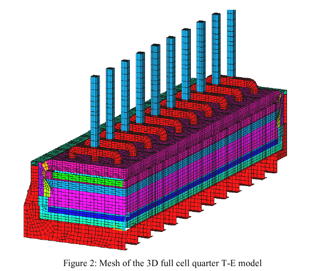 In the context of the present study, the next priority was rather the extension of the 3D full cell side slice model into a full cell quarter including the liquid zone thermo-electric model (see figure 2).