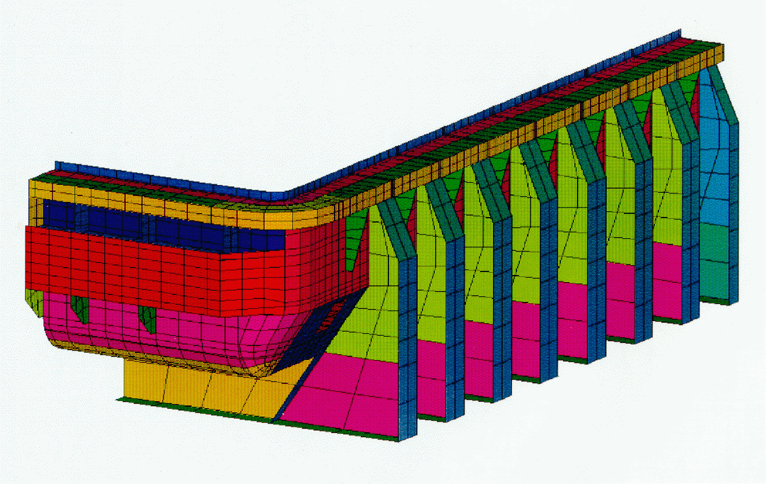 The complex geometry and generation of heat within the cathode lining makes a combined calculation of the heat and current flow by finite element methods desirable. A thermo-electric model allows for the calculation of the location of isotherms in the lining, the freeze profile and the heat dissipated by the cathode. After validation of the model results against measurements obtained from thermo-electric "blitz" campaigns, the model can be used to investigate changes in the lining materials as well as changes in the process parameters. Quarter Model Description The cell technology used at the Grande-Baie smelter, with its sloped potshell side wall, its curved potshell end wall and its intricate pier design, has one of the more complex cathode lining geometries in the aluminum industry (Figure 1). The representation of such a complex geometry by a parametric finite element model proved to be quite an undertaking, especially in the corner zone between the side and end wall designs.